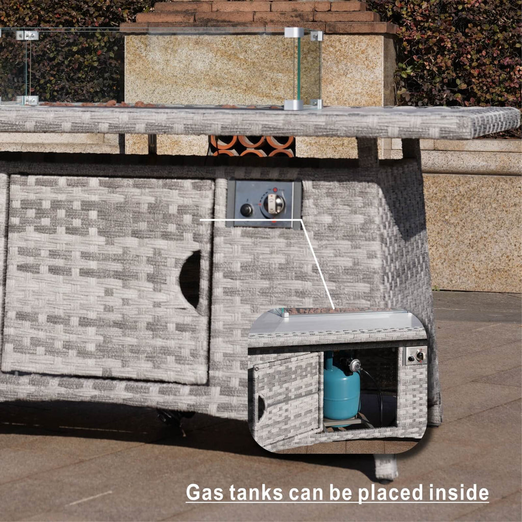 - Gas Fire Pit Table Size: L59.1" * W37.4" * H27.2" with glass cover