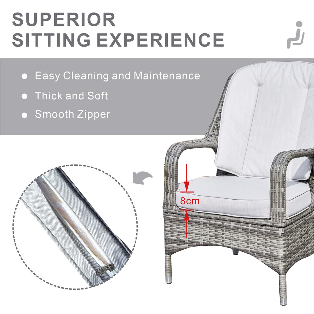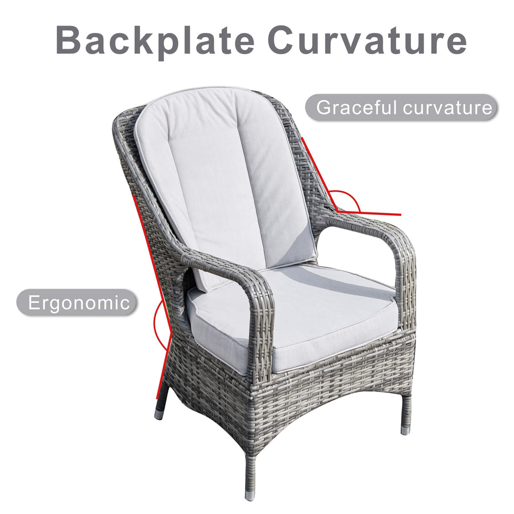 - All-Weather Comfort: Armchairs include thick 8 cm cushions with water-repellent fabric covers for lasting comfort.