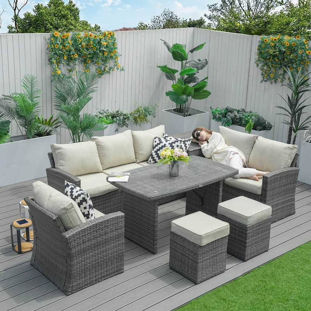 - Comfort First: Features curved backs and 3.94" thick cushions on every seat, offering ergonomic support and plush comfort for all-day lounging or extended conversations outdoors.