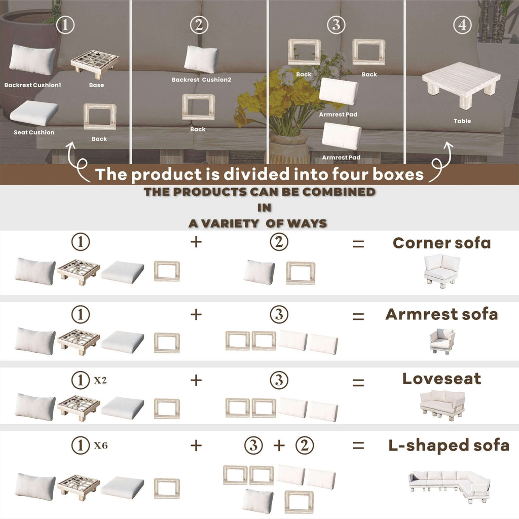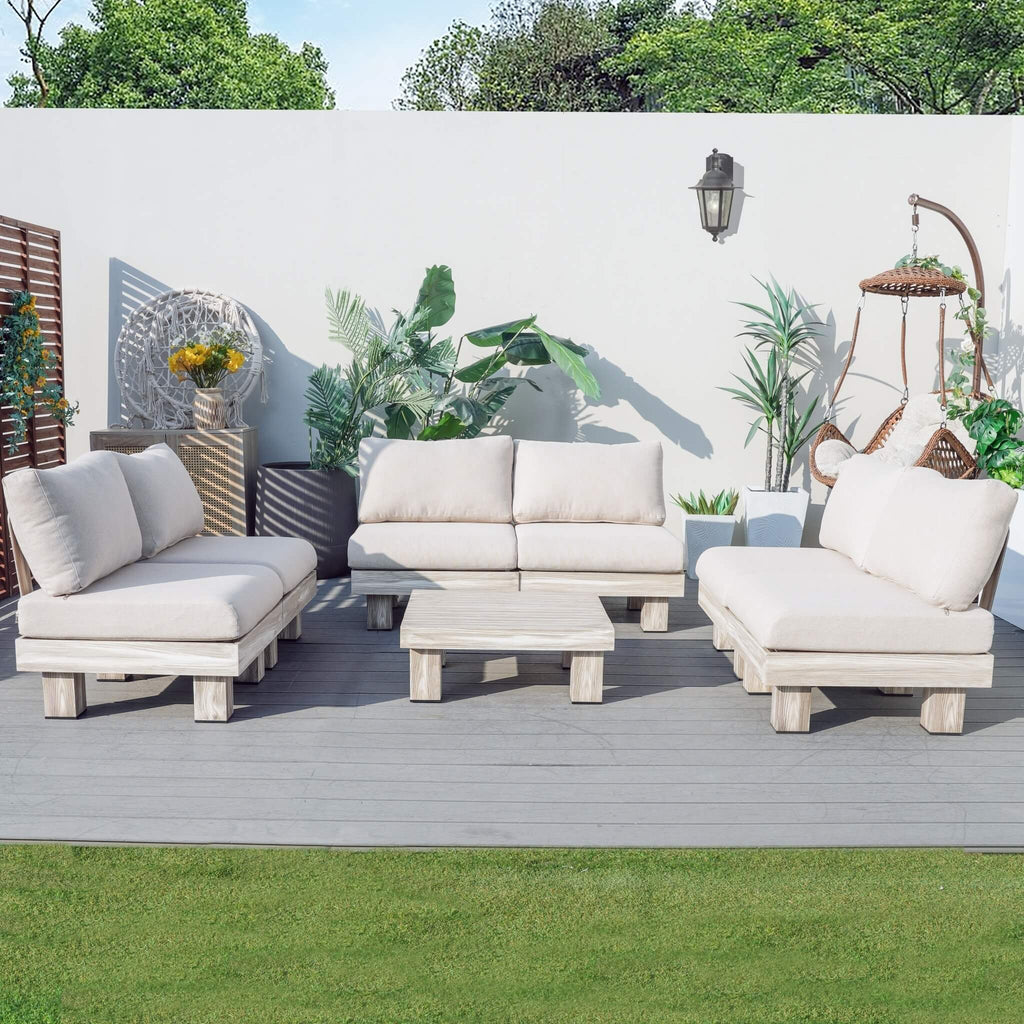The Armless Patio 6-Seat Sofa Set is designed to elevate your outdoor living with generous seating and endless layout possibilities. Featuring six armless single sofas and a matching coffee table, this set allows you to create the perfect arrangement for any space—whether it’s a U-shape for conversation, an L-shape for lounging, or a linear 6-seat bench for larger gatherings.