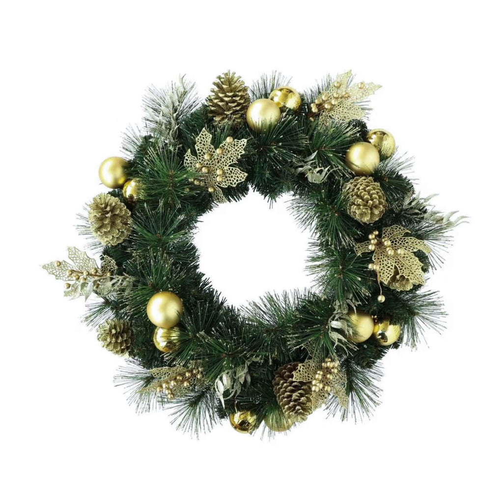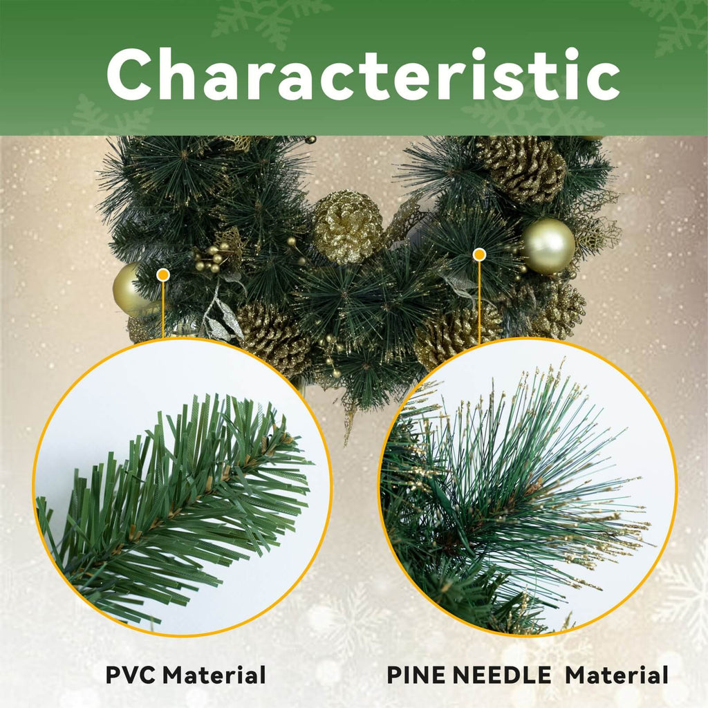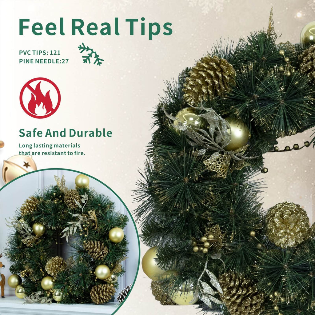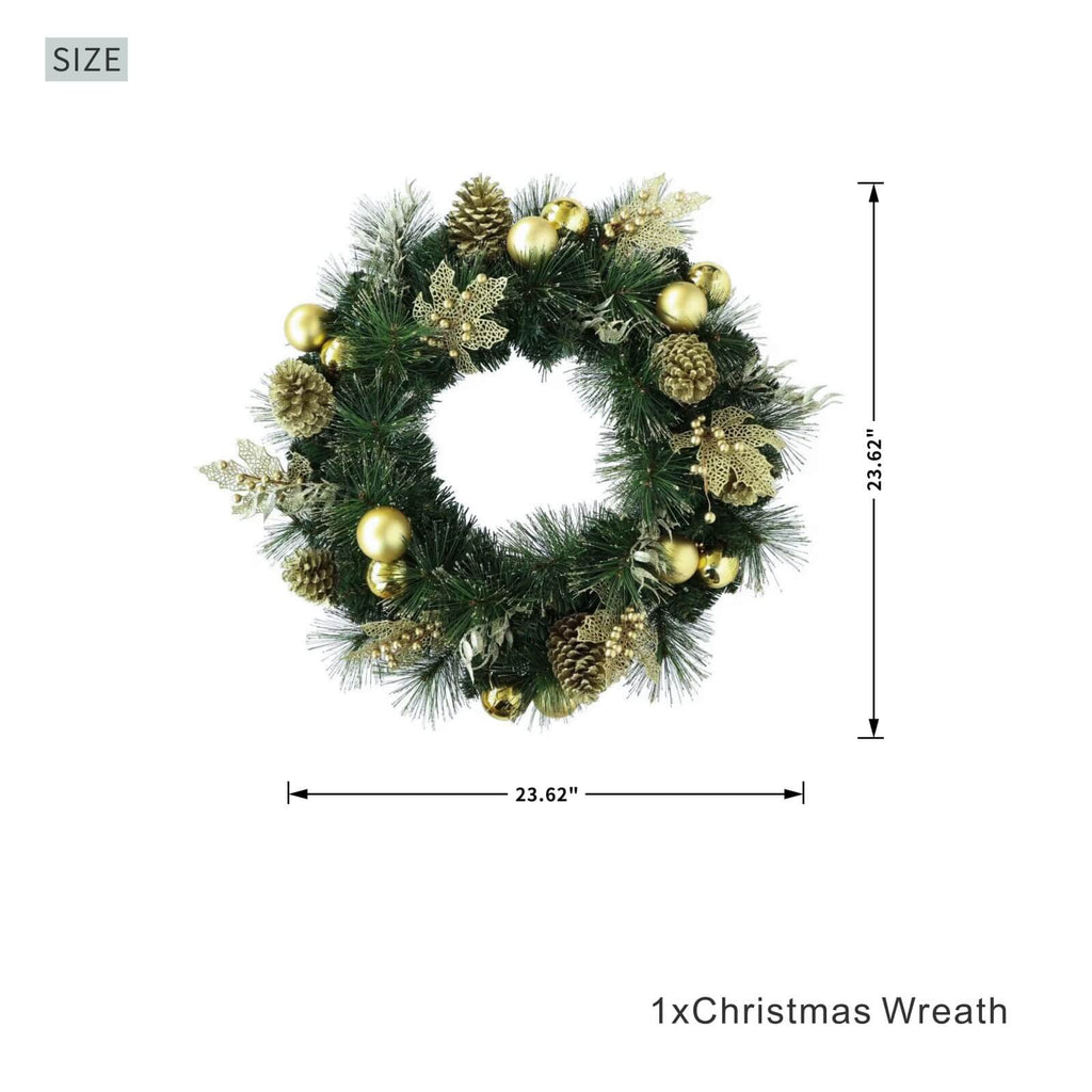 ✔ 1 × Green Christmas Wreath with Gold Accents(Ø23.62")
