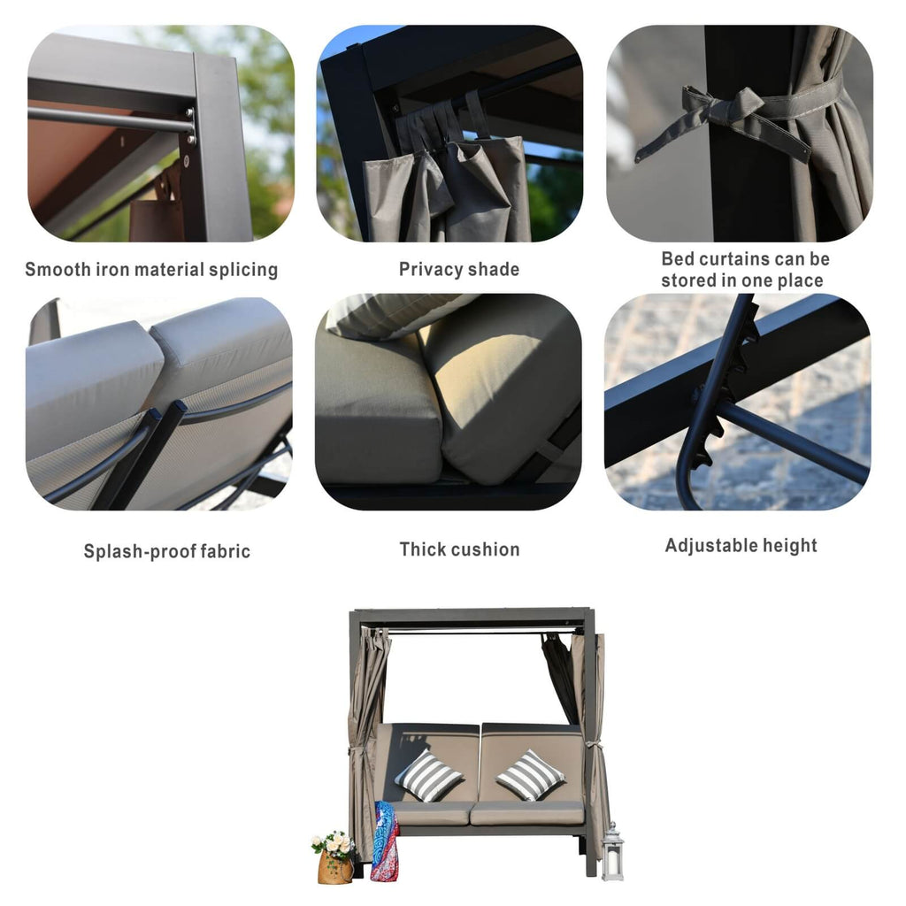 Relax in luxury with this Daybed with Canopy, designed to offer the ultimate outdoor retreat. Featuring an adjustable canopy for sun protection from any direction and two adjustable chaise lounges, this daybed allows you to create your own personal relaxation space. Perfect for enjoying long summer days in your backyard, it’s your go-to sanctuary for ultimate comfort and style.