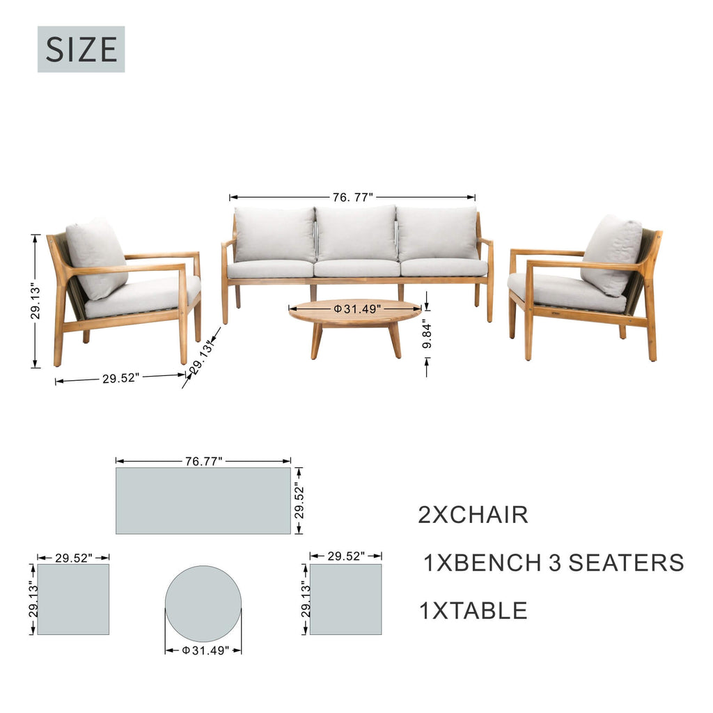 Create a stylish and comfortable outdoor retreat with this teak-color sofa set, perfect for any season.