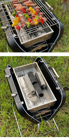 The internal structure is actually not complicated, and without the tedious installation process. The top layer is a barbecue grill, and the bottom is an entrance for charcoal. Just open the box, set the grate tray on the box, and the carbon tray will fall inside, and then you can start your barbecue party. Coupled with the perfect distance between the grate and the charcoal, the food can be cooked faster without sticking to the food. The unique grate design is convenient for adding charcoal.