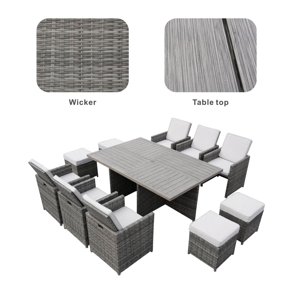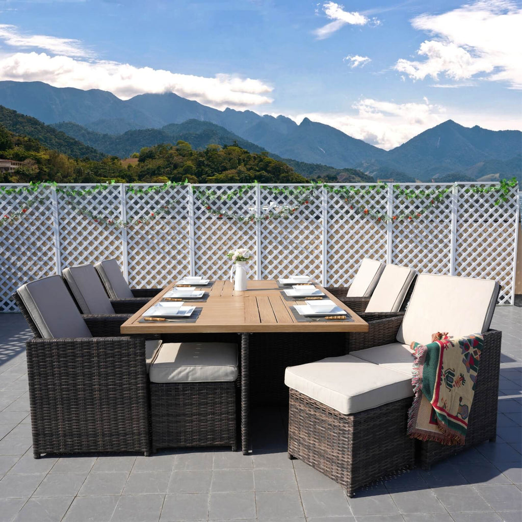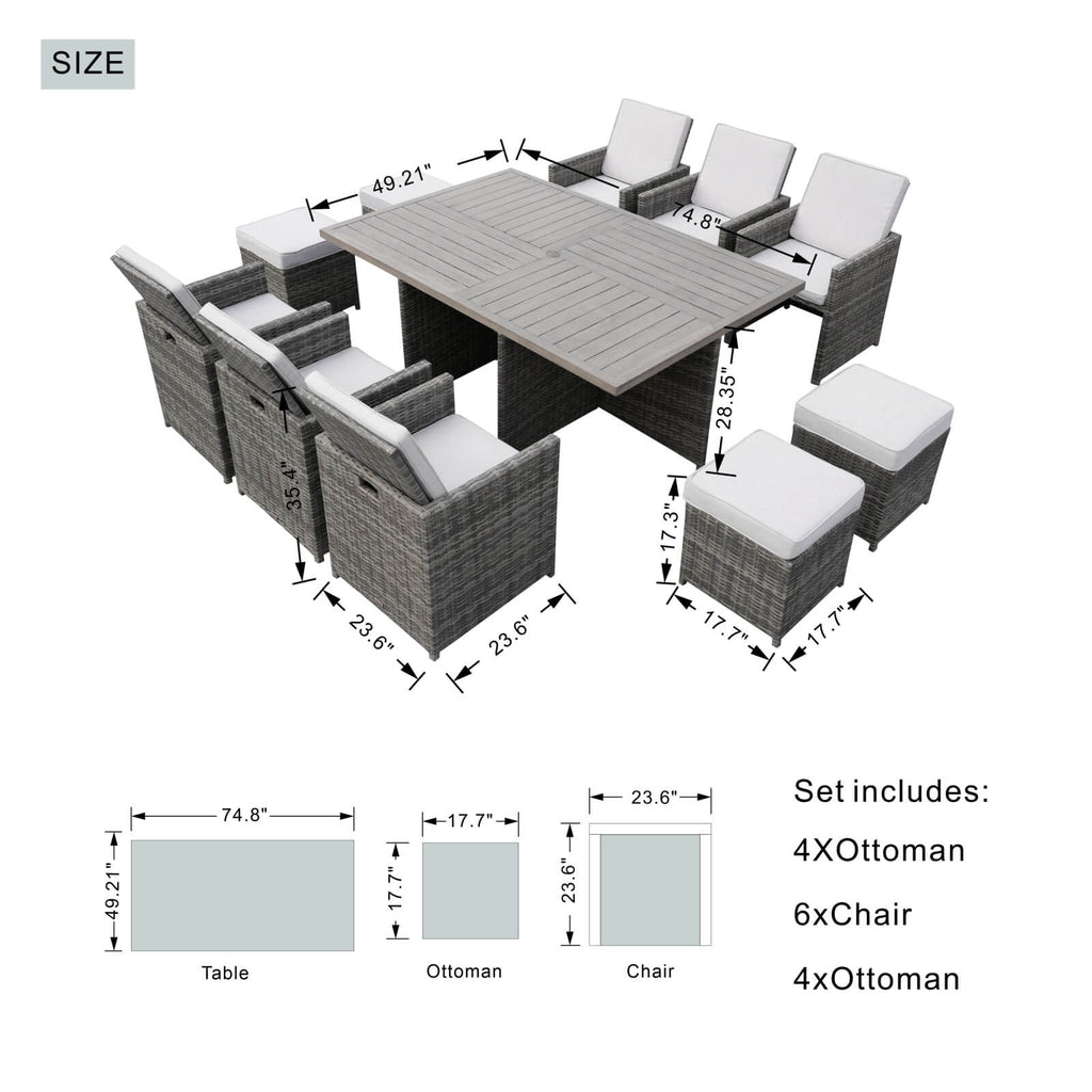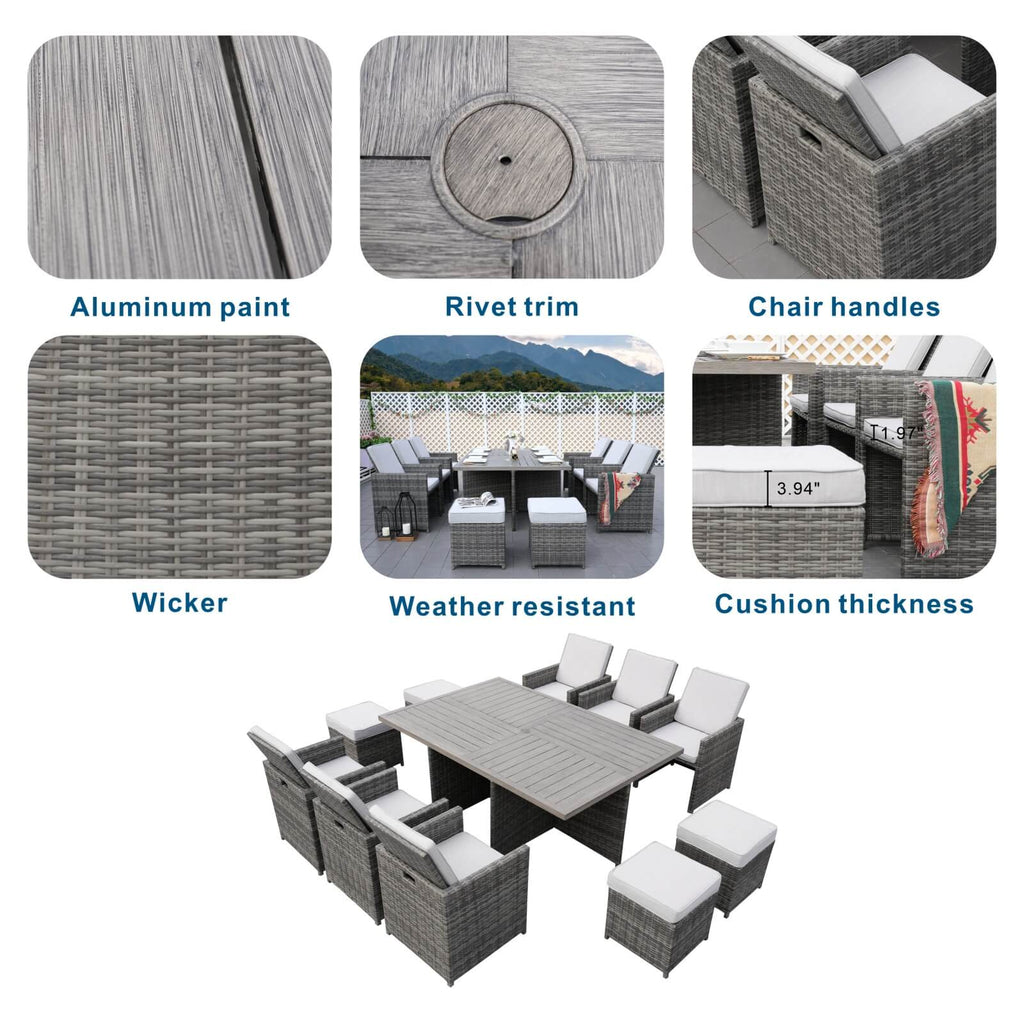 - Spacious & Practical:Designed to comfortably seat up to 10 people, this dining set is ideal for hosting large family meals, outdoor parties, or social gatherings. Its generous layout provides ample space for everyone to dine and interact with ease.